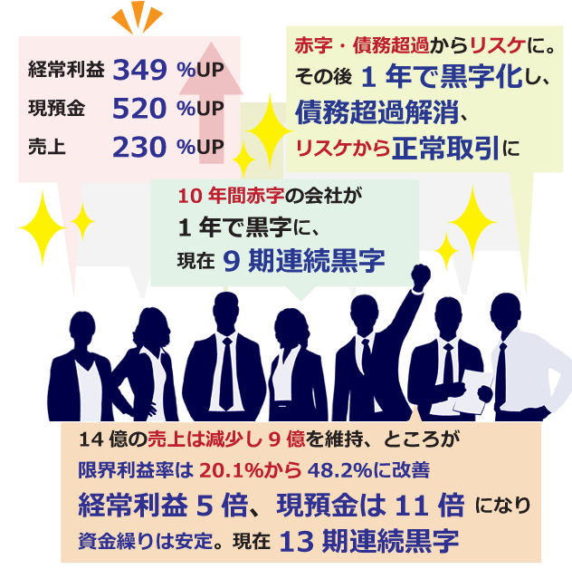 「会社に利益とお金を残す」ことをテーマにコンサルティングを行い、その成果は、