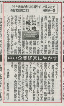 弊社代表の著書 新刊「今と未来の利益を増やす 社長のための経営戦略の本』が7月29日(発行7月28日)の夕刊フジの17面で紹介されました!