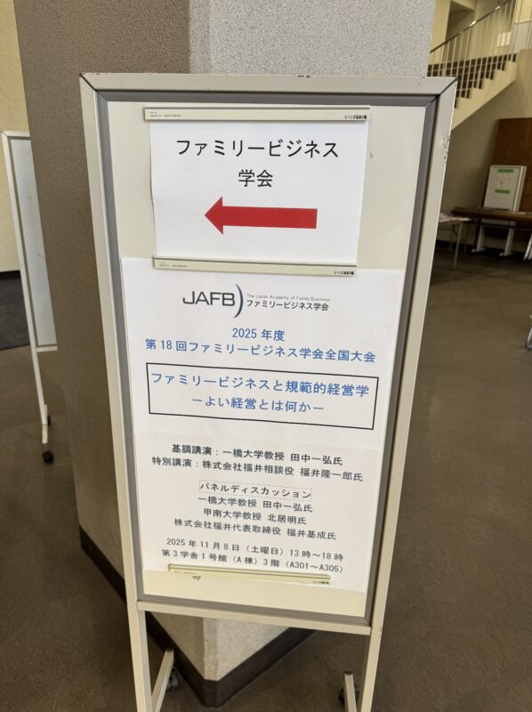 2025年11月8日 関西大学で開催されました第18回ファミリービジネス学会全国大会で研究発表をしました