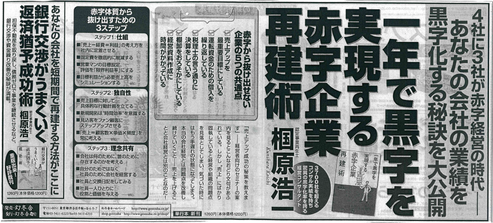 書籍「一年で黒字を実現する赤字企業再建術」が掲載されました