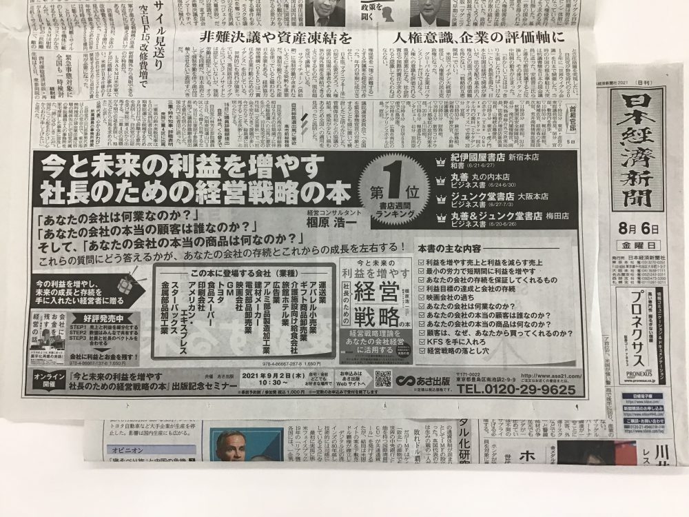 弊社代表椢原浩一の著書『今と未来の利益を増やす社長のための経営戦略の本』が掲載されました。