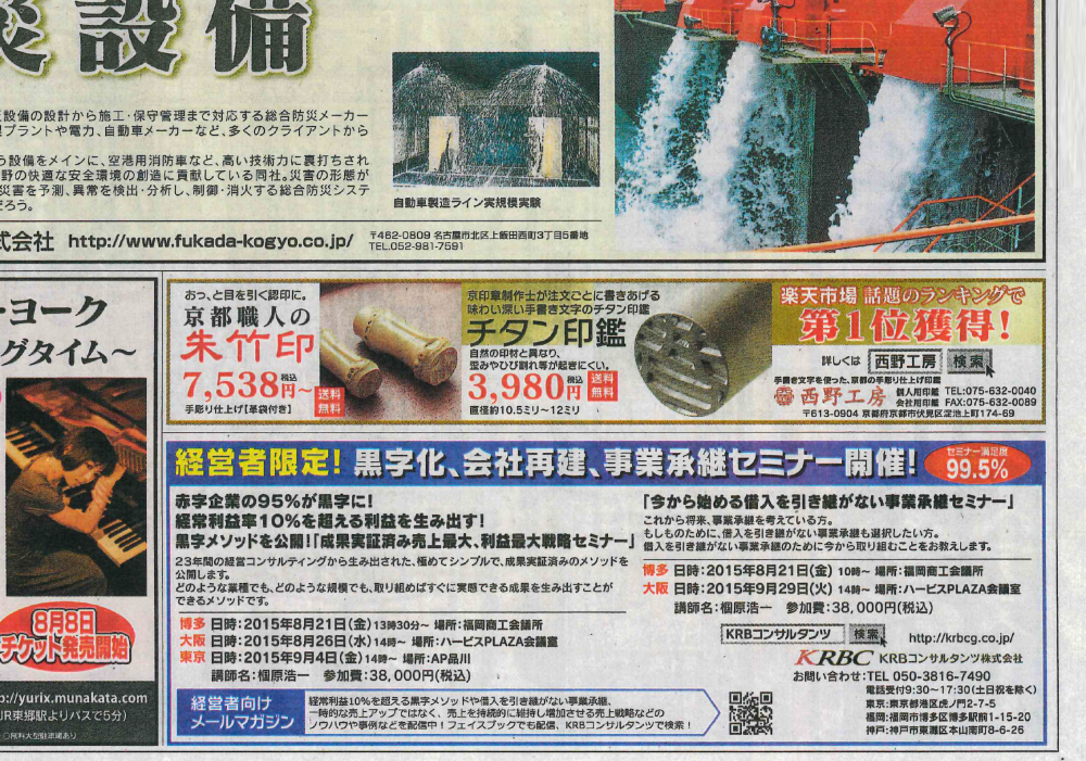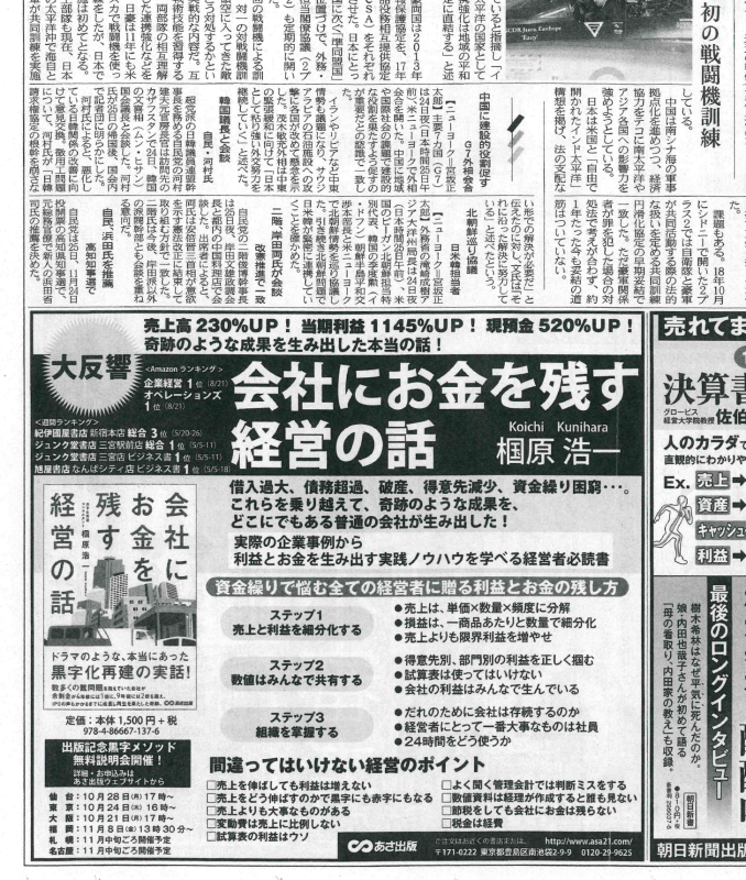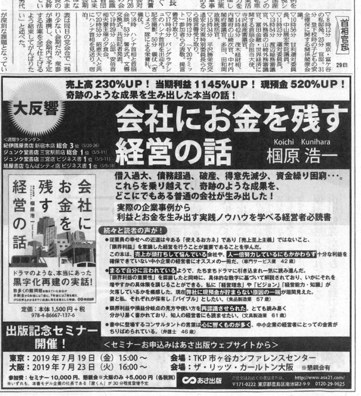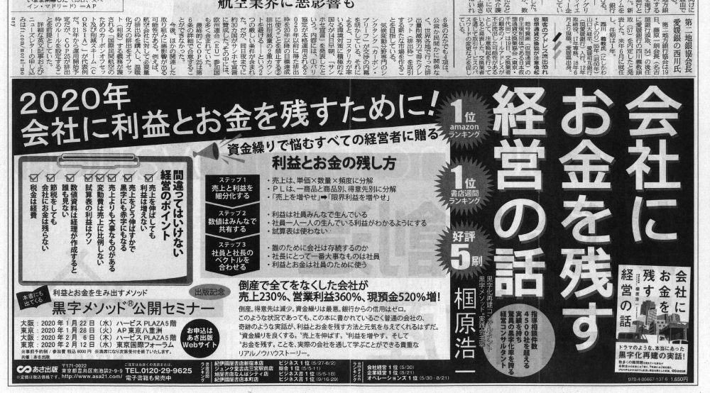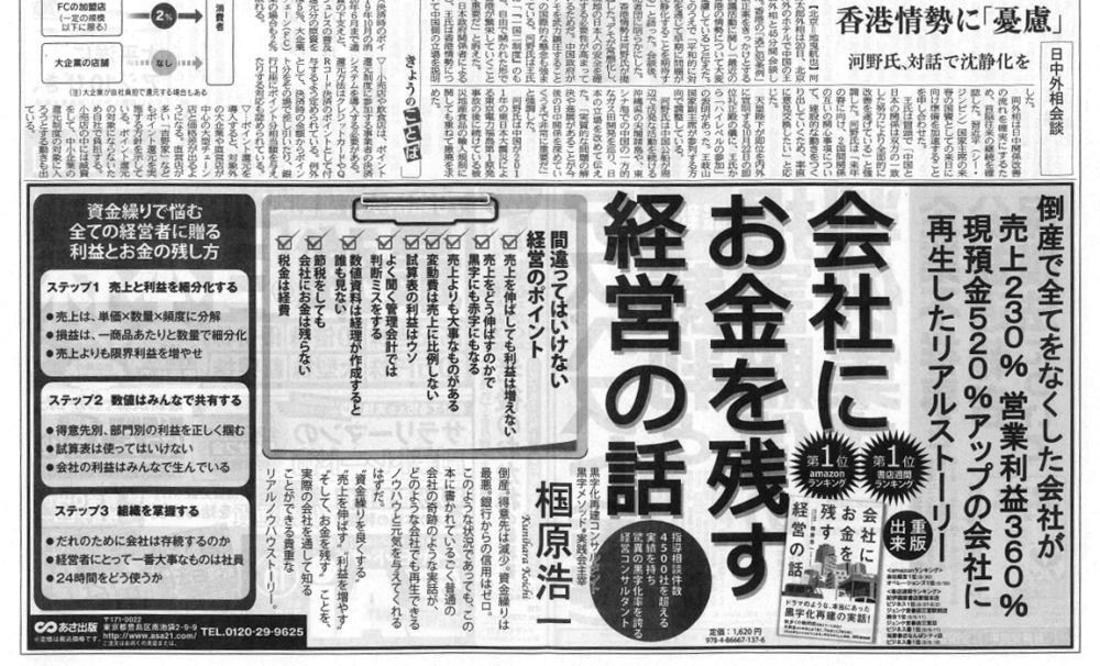 金融面に「会社にお金を残す経営の話」の書籍が掲載されました