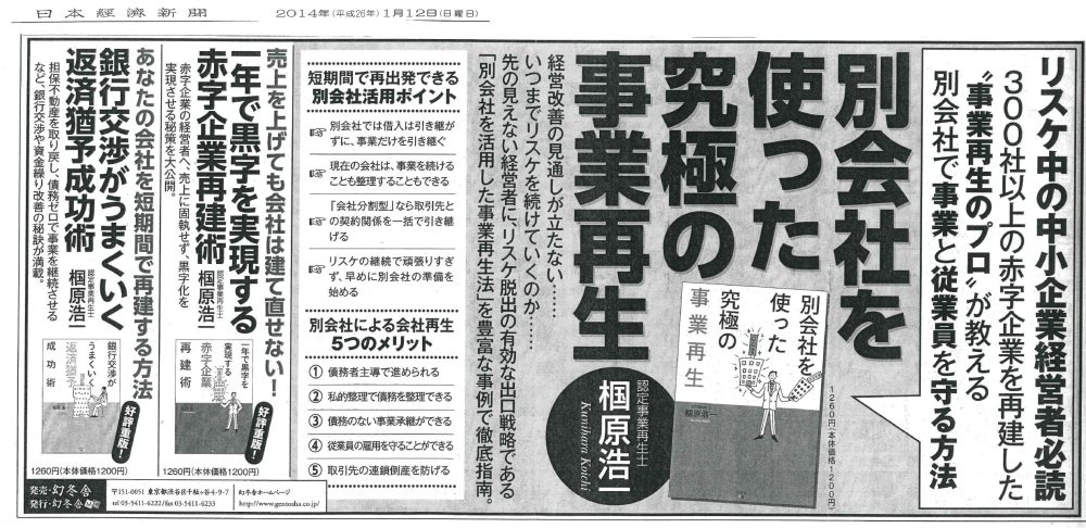 書籍「別会社を使った究極の事業再生」が掲載されました