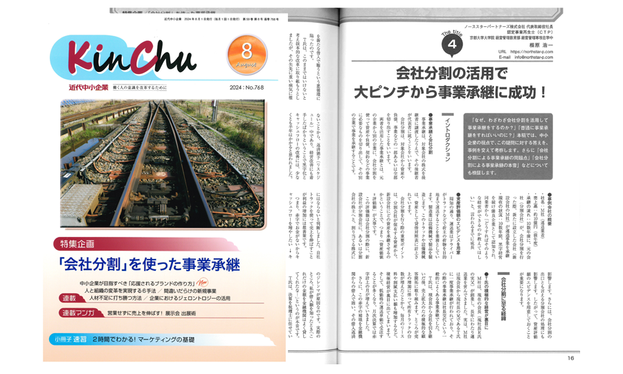 会社分割の活用で大ピンチから事業承継に成功!(全5ページ)の執筆が掲載されました