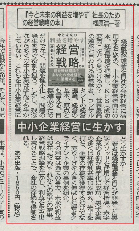 弊社代表椢原浩一の著書『今と未来の利益を増やす社長のための経営戦略の本』が紹介されました。